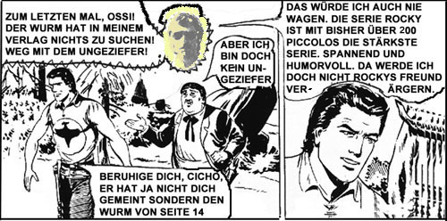 Ossi Heiter's Zeichentalent reicht gerade mal aus, um einen Regenwurm zu zeichnen, aber "Die Abenteuer eines mitteleuropäschen Regenwurms" waren für einen Comic doch zu ungeeignet, daher versucht er immer wieder heimtückisch, dieses Gewürm in den Virt-Verlag einzuschleusen....